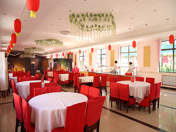 西海岸餐飲部:設有三個宴會大廳,40多個包房,可同時接待1600人就餐。其中豪華西區珍饈餐廳19個包間;70后主題餐廳以古典形式裝修,14個包間,讓你回味童年時代的美味。夏季晚上還提供燒烤等休閑小吃;院內可停放200多輛車位,是舉辦婚宴、聚會、生日宴會的理想場所。